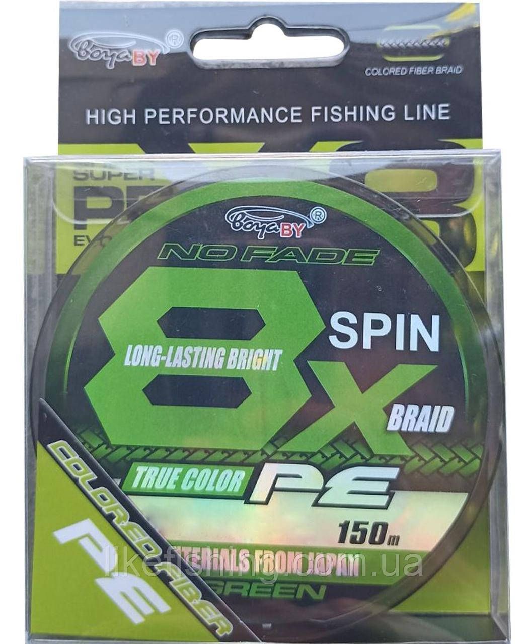 Шнур 0.22 мм 150 м Х8 PE Boya By Fluo Green