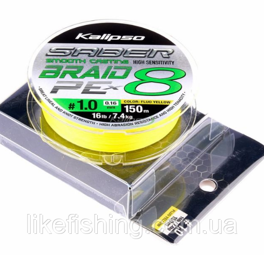 Шнур Kalipso Saber X8 – это высокочувствительный 8-жильный шнур с минимальной растяжимостью. Шнур гладкий, бесшумный при прохождении в кольцах. 8-жильная структура позволяет изготовить крепкий, круглый и плотный шнур, который имеет отличные бросовые характеристики. Шнур Saber X8 универсален и подходит для использования в различных способах рыбалки. Выпускается в размотке 150 метров в трех цветах. Ярко-желтый цвет позволяет отлично визуально контролировать шнур.