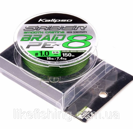 Шнур Kalipso Saber X8 – это высокочувствительный 8-жильный шнур с минимальной растяжимостью. Шнур гладкий, бесшумный при прохождении в кольцах. 8-жильная структура позволяет изготовить крепкий, круглый и плотный шнур, который имеет отличные бросовые характеристики. Шнур Saber X8 универсален и подходит для использования в различных способах рыбалки. Выпускается в размотке 150 метров. Темно-зеленый – максимально маскирует шнур в воде, будет уместным в условиях когда рыба очень осторожна.