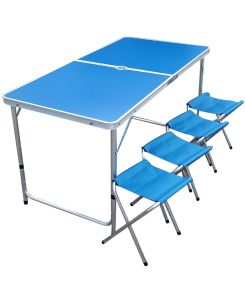 Стол туристический алюминиевый складной 120*60 + 4 стула синий