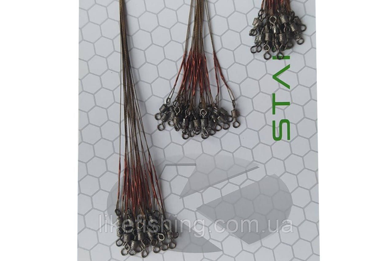 В набор поводков 3 размера входят поводки длиной 15 см, 20 см, 25 см, имеют разрывную нагрузку 10 кг. Поводок выполнен из металла покрыт оплеткой, оснащен вертлюгом и застежкой. Поводок не перекручивается и не меняет игру приманки, идеален для ловли щуки, сома, судака. Фурнитура на поводке (застежка и вертлюжок) подобрана по размерам и соответствует разрывной нагрузке поводка. Поводки незаменимы при ловле щуки, а так же при обилии ракушек и камней поводок надежно защитит от среза вашу приманку.
