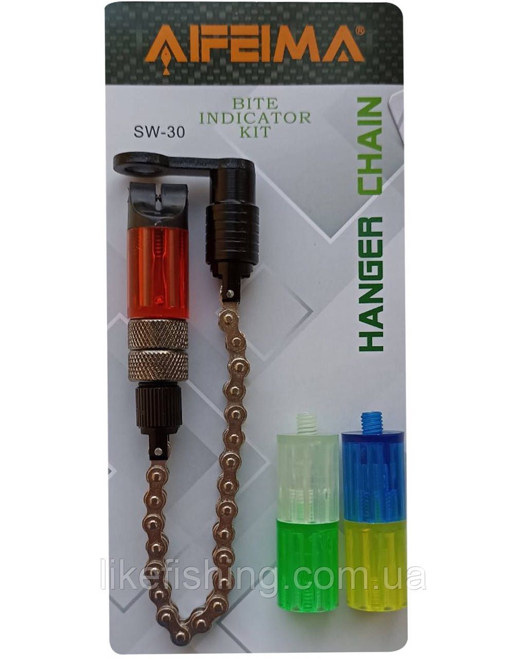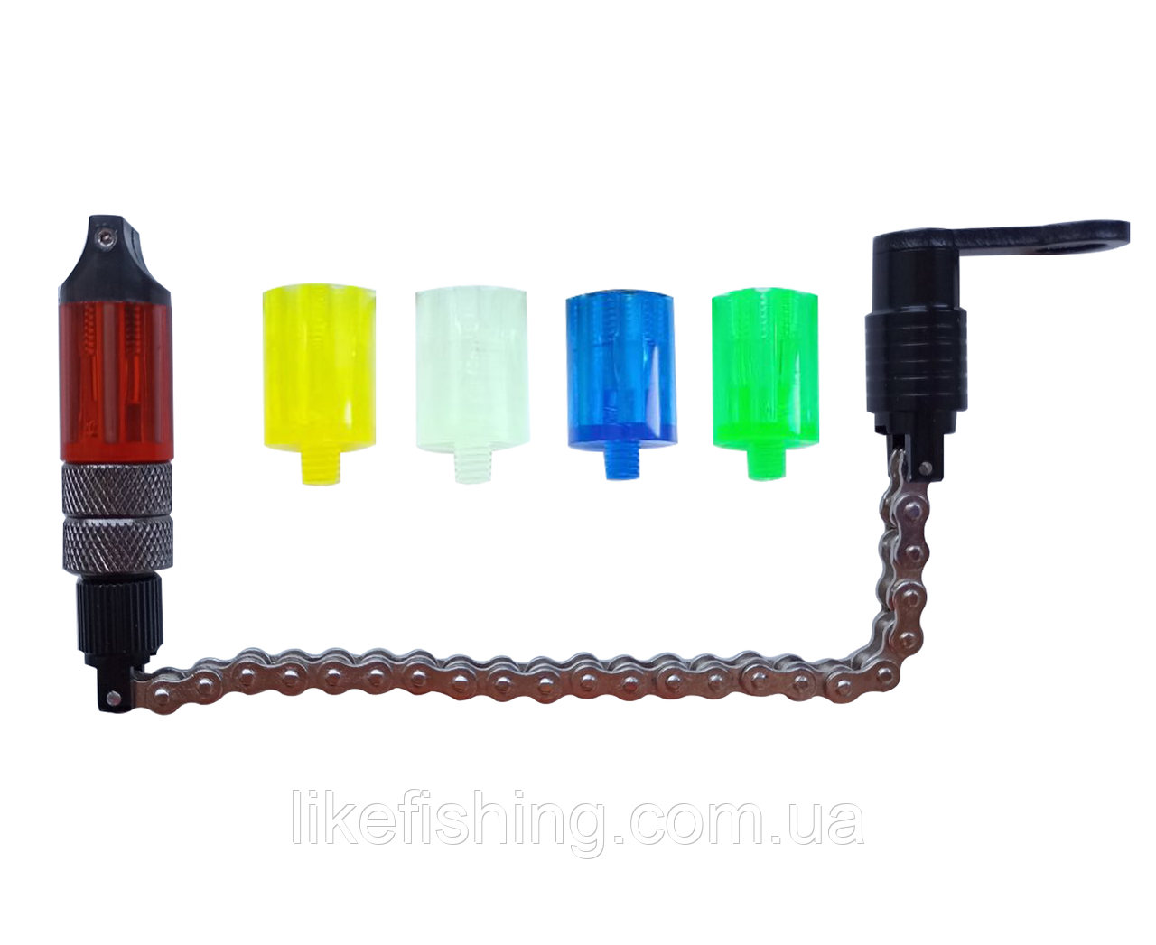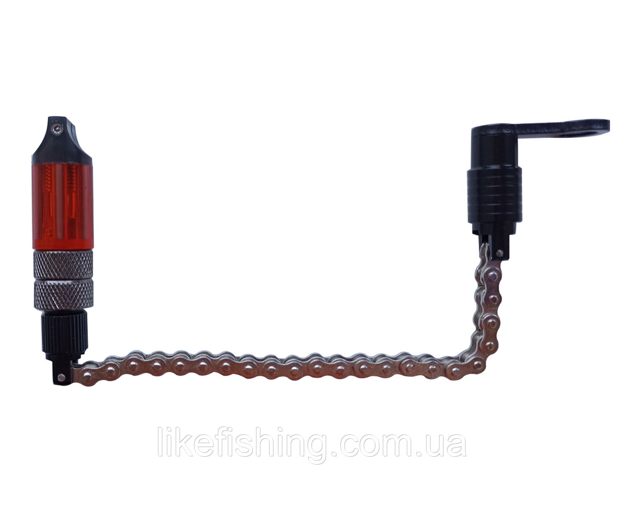 Свингер на велосипедной цепочке с утяжелителями и дополнительными стеклами, оснащен магнитными шариками для захвата лески или шнура, так же для удобства сборки и разборки оснащен быстросъемником. Свингер легко можно правильно настроить в любую погоду, покажет даже очень слабую поклевку.