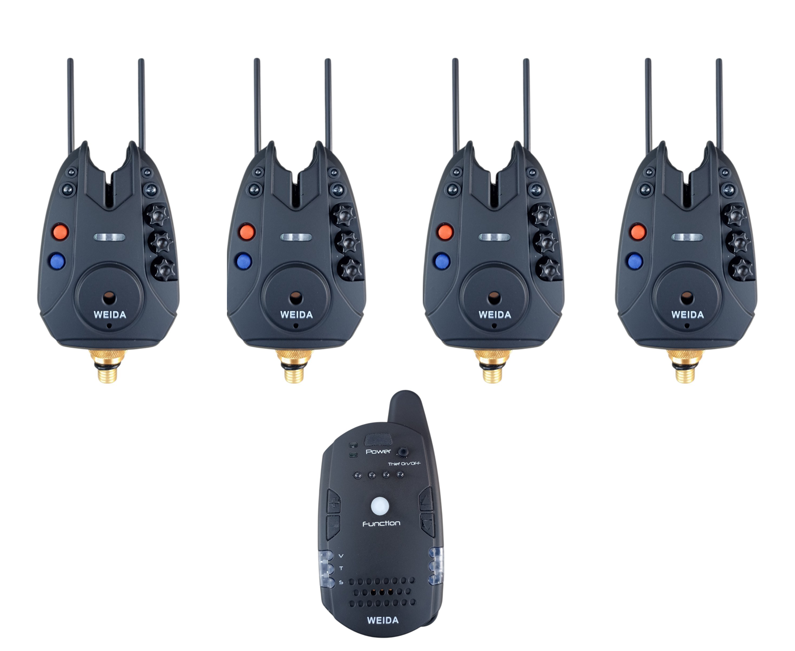 Набір сигналізаторів клювання 4+1 Weida FA312-4 Антизлодій, 6 кольорів, бічні фіксатори